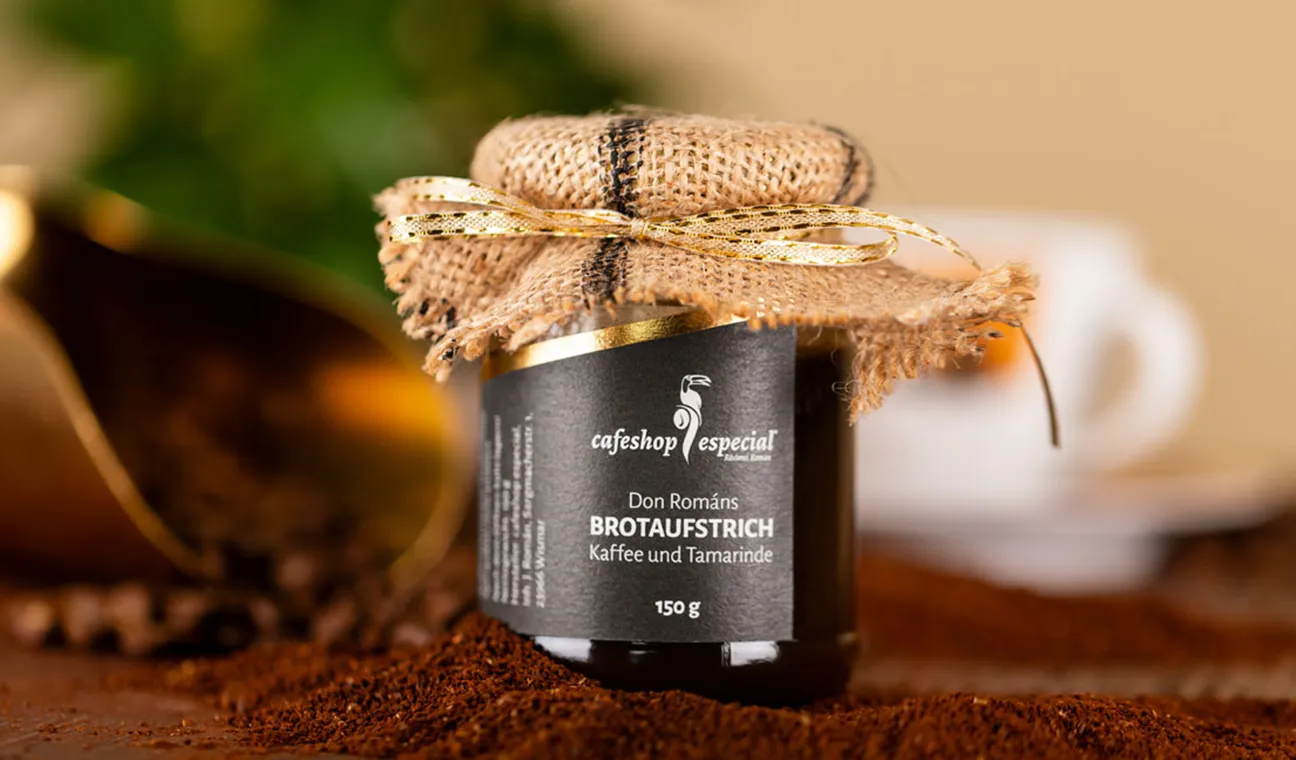 Frisch aus unserer Ladenküche: Don Románs Brotaufstrich mit röstfrischem Kaffee und Tamarinde.Einzigartiger Kaffeegeschmack fürs Brot, abgerundet durch eine feine süß- säuerliche Note der Tamarinde. Als Geheimtipp auch in Kombination mit Eis ein Genuss! Nettofüllmenge: 150gZutaten: Wasser, Tamarindensaft, Rohrzucker, Kaffee (10g / 100ml Wasser), Tamarindenfruchtfleisch, Geliermittel: Apfelpektin nicht amidiert