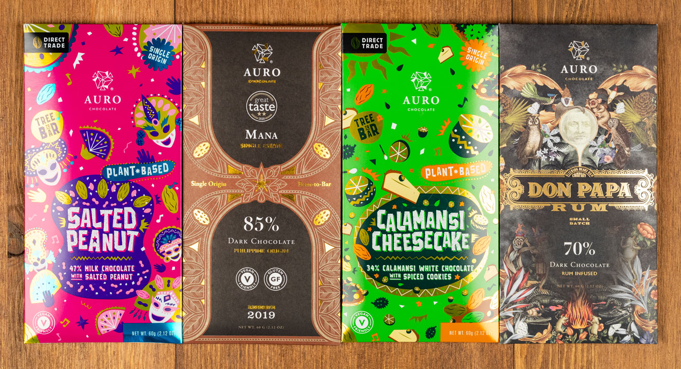 Außergewöhnlicher Schokoladengenuss von den Philippinen. Dafür stehen die Tafeln von Auro Chocolate. Die Palette reicht von herausragenden Single Estate Kakaos über Infusionen mit Rum bis hin zu Milchschokoladenalternativen auf Haferbasis. Produziert in kleinen Mengen und bis zur fertigen Tafel vor Ort auf den Philippinen.