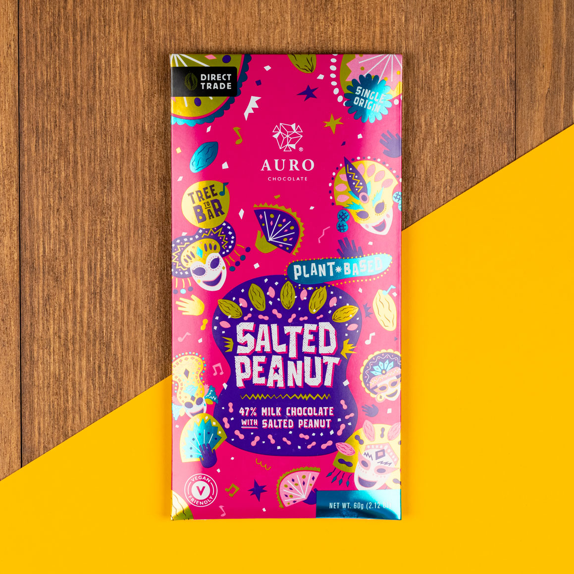 Vegane Alternative zur Milchschokolade auf Haferbasis kombiniert mit gesalzenen Erdnüssen. Eine leckere Kombination mit einzigartiger Textur und vollem Geschmack.