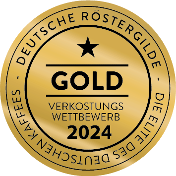 Unsere prämierte Espressomischung ist eine Kombination von Kaffees aus Nicaragua und Indonesien Sumatra. Kräftiger Körper, feine fruchtige Nuancen, charakteristische Bitternoten und ein unvergleichliches Aroma bleiben noch lange nach dem Genuß in Mund und Nase zurück. Dafür gab es beim Verkostungswettbewerb 2024 der Deutschen Röstergilde zum insgesamt fünften Mal die Goldmedaille in der Kategorie Espresso.